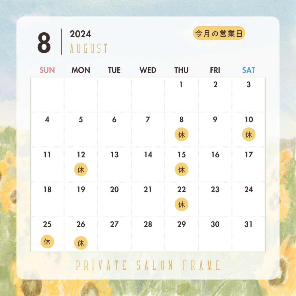 こんにちは😃private salon frameです。当店はオールハンドのリンパマッサージサロンとなっております🫶暑さ厳しい毎日が続いておりますね💦