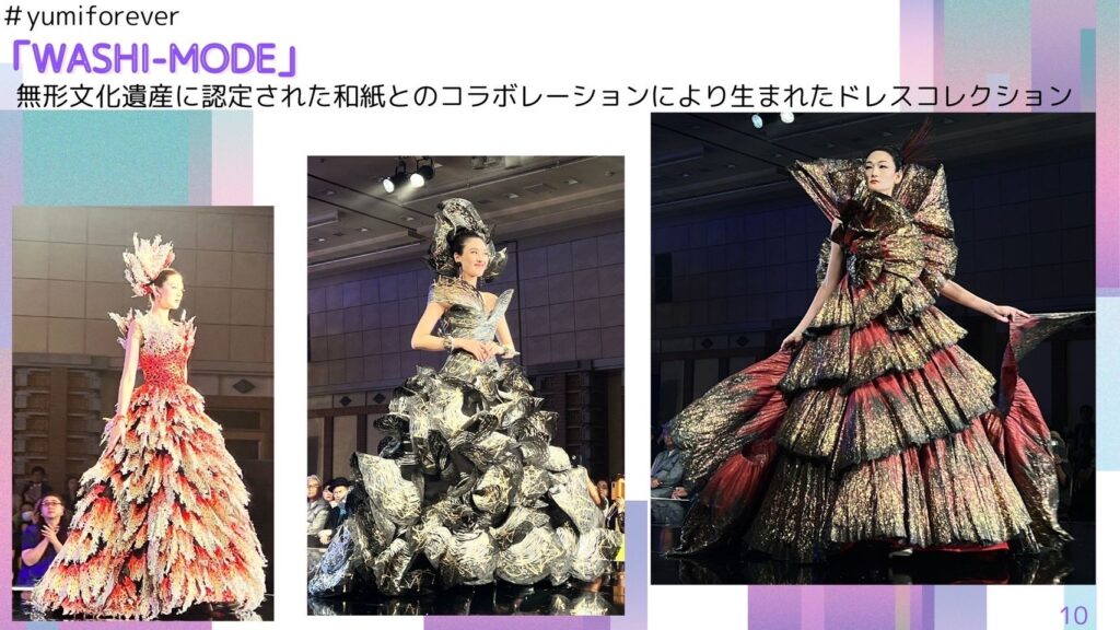こんにちは😊ダイナム豊前店前にあるprivate salon frameフェイシャルエステ&よもぎ蒸し担当のmegumiです😊お盆も終わりましたね 💦少しずつ涼しくなるといいな…✨と思ってますが今日も大変いいお天気です🤣さて、まだまだ続きます‼️桂由美先生ファッションショーの様子✨今日もお楽しみください❤️