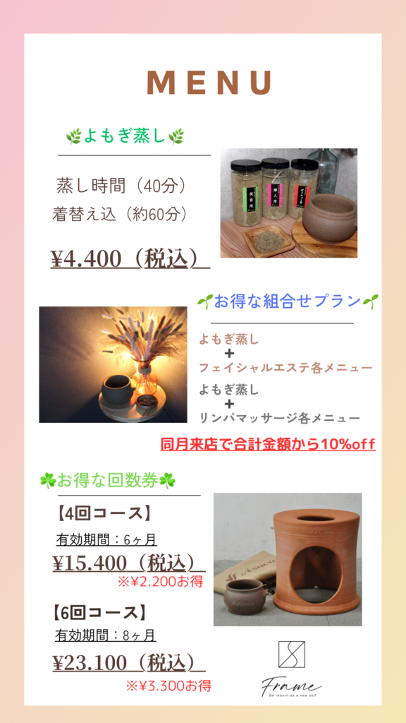 こんにちは♪ 豊前市ダイナム店さま前にあるdestiny jiu-jitsu frame 2F にあるprivate salon frame エステ&よもぎ蒸し担当のmegumiです🌿またまた今日も☔️ですね💦スッキリしないお天気は自律神経も乱れがち😢特に理由もないのにイライラしたり体がだるかったり、何もやる気がしない…なんて事はありませんか⁇そんな時にオススメ飛鳥湯‼︎