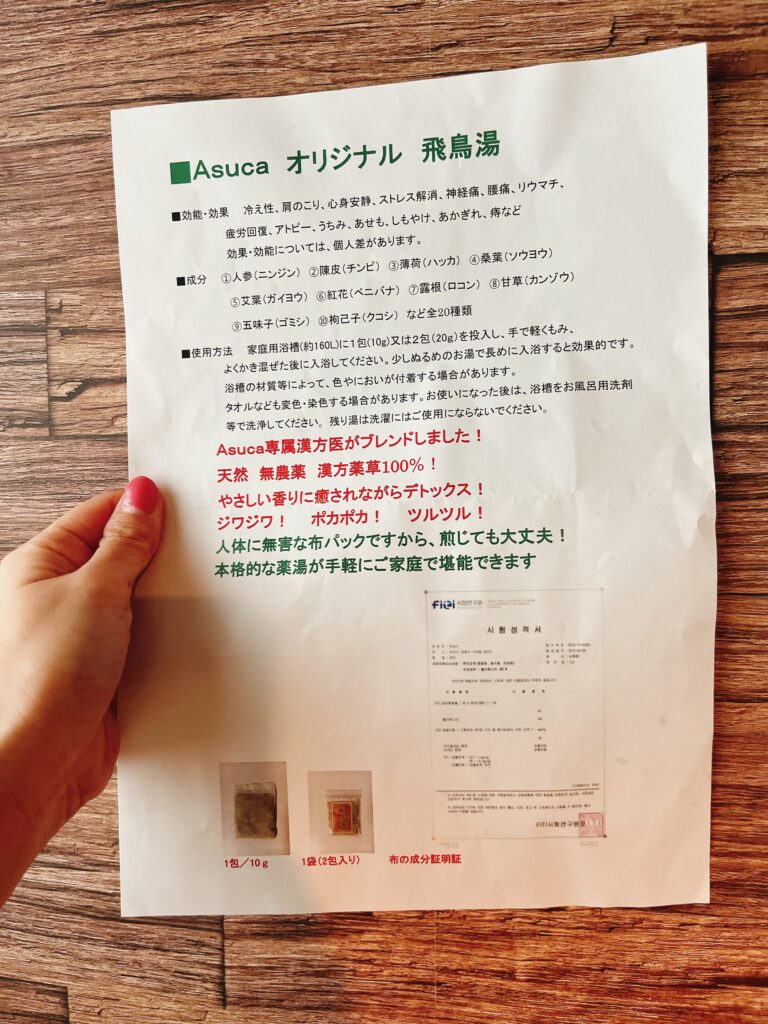 よもぎ蒸し🌱に行ってスッキリしたいけど時間がなくて、なかなか行けない💦という方にオススメ‼︎布パックにもこだわってるので煎じることも出来るそうです‼︎そんなスペシャルな飛鳥湯は、いつものお風呂に⭐︎ポーン‼︎⭐︎と一包入れてゆ〜っくりと入浴タイムを楽しむだけでよもぎ蒸しをしたのと同じ効果が得られるそう🤩お子様からおじいちゃんおばあちゃんまで家族みんなで楽しめる飛鳥湯です‼︎気になる方はDM/LINEにてお問い合わせお待ちしております♡