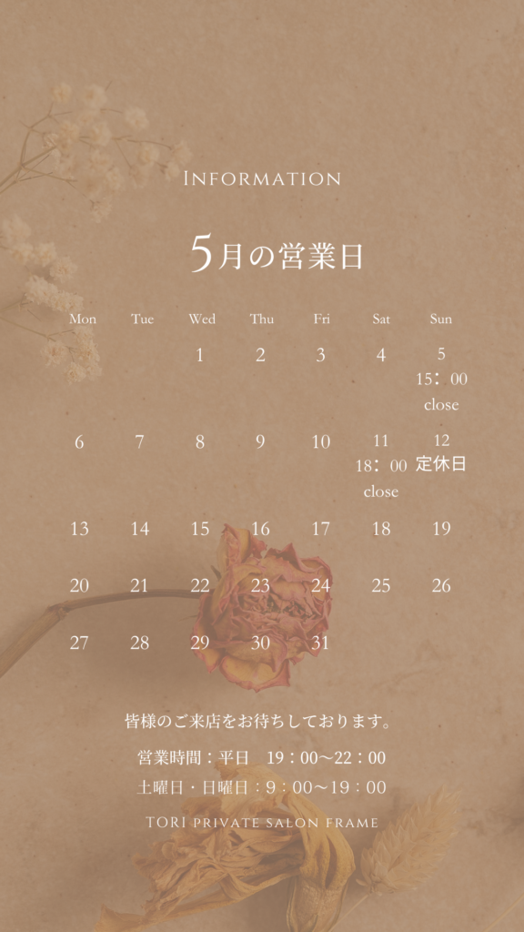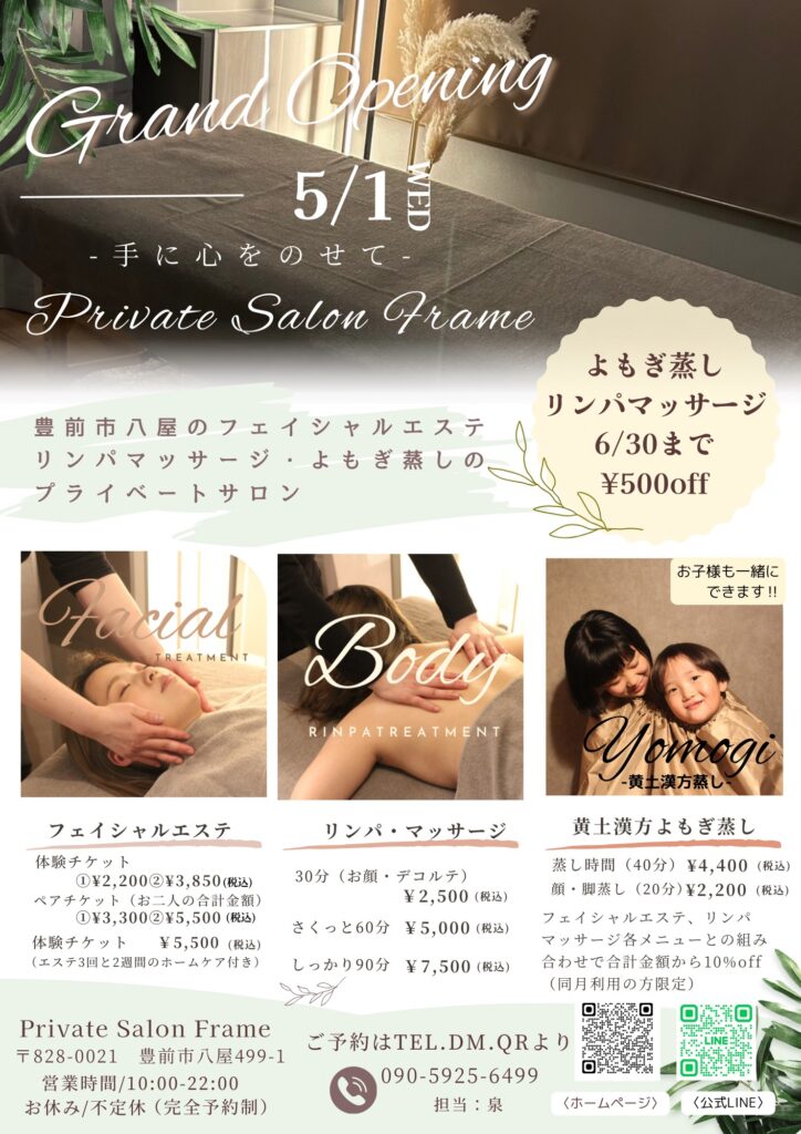 おはようございます😊private salon frameのトリです🫶リンパマッサージサロン、本日も元気に開店いたします!!